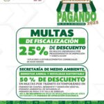 En trámites de la secretaria de Medio Ambiente, Bienestar Animal y Movilidad Sustentable, hay un 50% en multa por trámite extemporáneo en: Permiso de Chapeo y Desmonte y/o Remoción Vegetal; Permiso Ambiental de Desarrollo y Permiso de Poda y Tala. Asimismo, 50 por ciento en regularización de años anteriores por Permiso de Operación Ecológica.