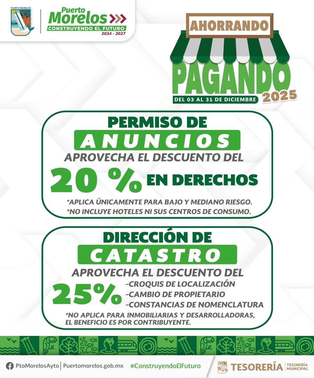 Puerto Morelos (Marcrix Noticias).– Con el objetivo de seguir respaldando la economía de las familias portomorelenses, el gobierno municipal invita a la ciudadanía a aprovechar los últimos 15 días de la campaña de descuentos en contribuciones “Ahorrando Pagando 2025”.