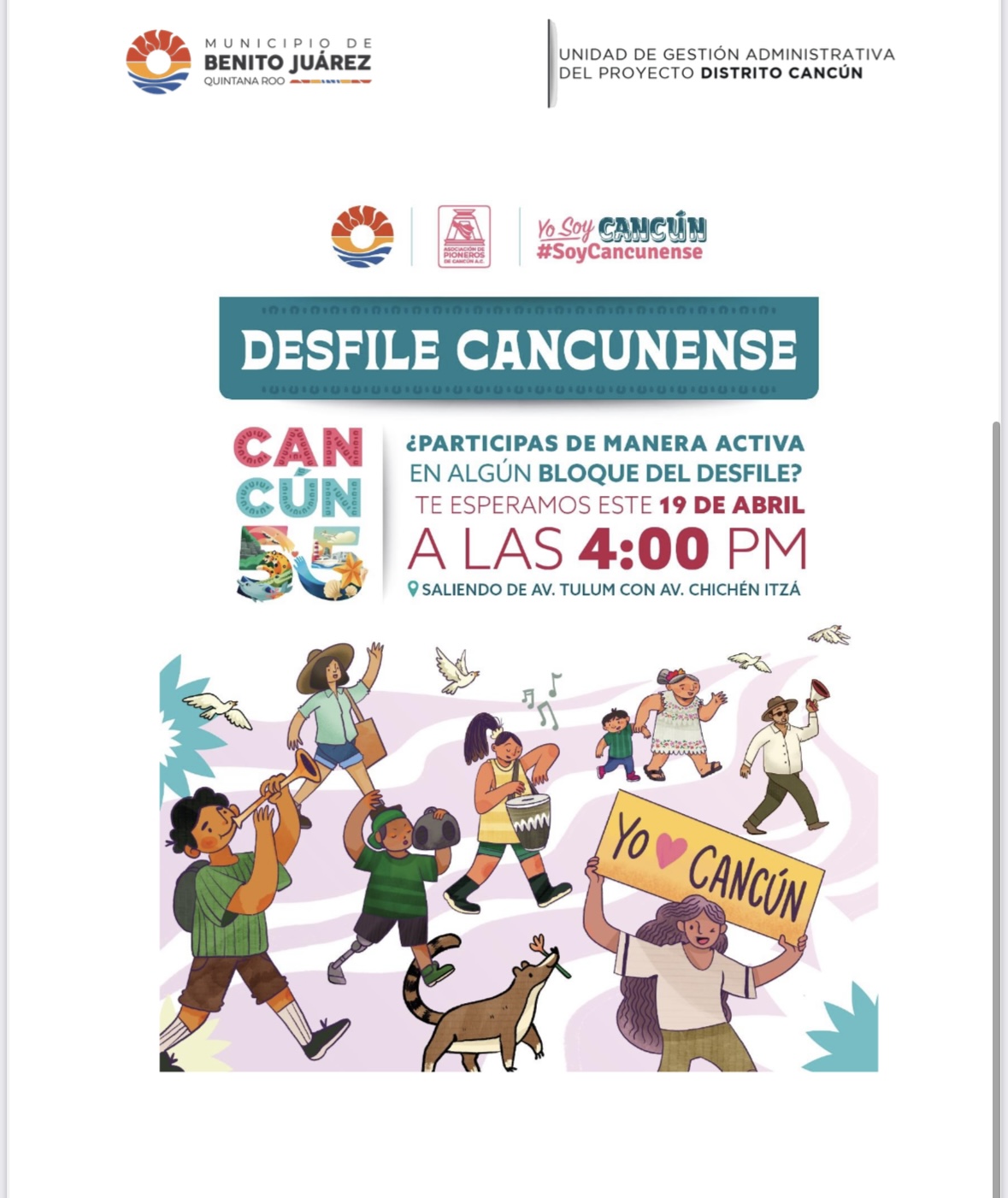 Cancún (Marcrix Noticias)-Con motivo de la celebración por el 55 aniversario de la fundación de Cancún, autoridades municipales han extendido una invitación a asociaciones civiles para sumarse al tradicional Desfile “Cancunense”, una de las actividades más emblemáticas del programa de festejos.