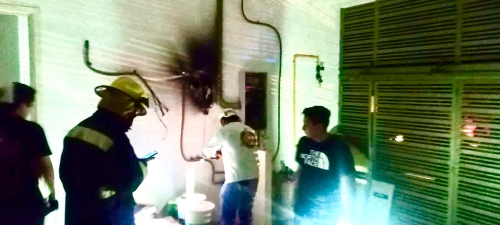 Isla Mujeres (Marcrix Noticias).- La oportuna intervención de los Bomberos evitó daños mayores en el incendio provocado por un cortocircuito en una casa de huéspedes del Fraccionamiento Mar Turquesa, en la carretera Perimetral.