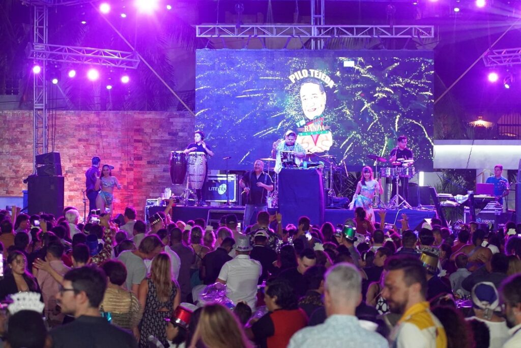 Después del conteo de Año Nuevo, las y los asistentes disfrutaron de un espectáculo de luces, mientras se abrazaban y felicitaban para recibir con la mejor energía el 2023. Al término de este show, inició el Gran Baile con el ritmo de Pilo Tejeda y su Banda Blanca, quienes deleitaron a los presentes con éxitos como “Fiesta”, “Saben quién llegó” y su clásico “Sopa de Caracol”.