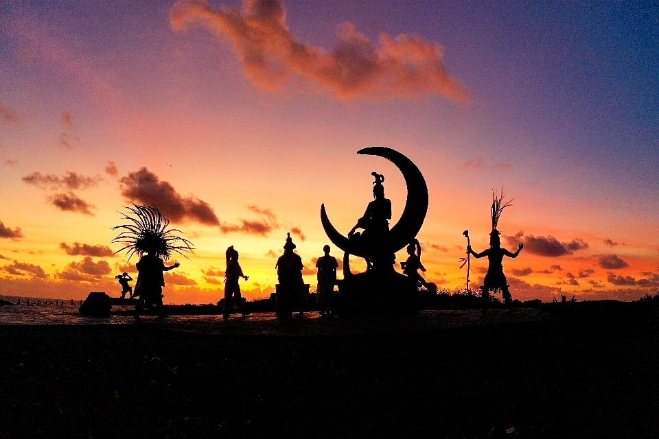 Isla Mujeres, Quintana Roo, 1 de enero de 2023.- El emblemático parque escultórico de Punta Sur, en el Pueblo Mágico de Isla Mujeres, recibió en las primeras horas de este Año Nuevo 2023 los primeros rayos de Sol en México, momento que presenciaron la Presidente Municipal, Atenea Gómez Ricalde, familias isleñas y turistas.