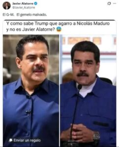 Ciudad de México (Marcrix Noticias).– La captura del Presidente venezolano Nicolás Maduro, no sólo generó reacciones políticas y diplomáticas a nivel internacional, sino que también desató una ola de memes en redes sociales, en la que se involucró el periodista mexicano Javier Alatorre, quien volvió a bromear sobre el supuesto parecido físico entre ambos.