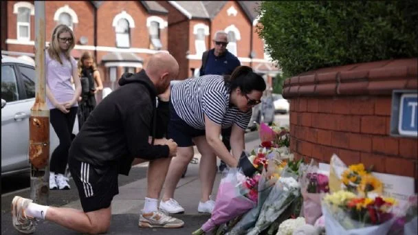 Vecinos de la zona dejaron flores y animales de felpa como homenaje a las víctimas ante el perímetro policial de una calle con casas de ladrillo en el balneario costero cerca de Liverpool, apodado como “soleado Southport” y que atrae veraneantes de todo el noroeste de Inglaterra con su playa y su muelle.