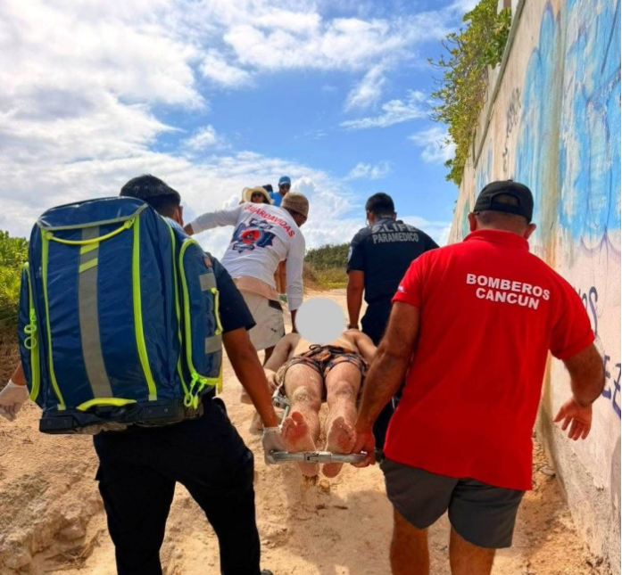Elementos de salvamento acuático de Protección Civil lograron rescatarlo y, junto con paramédicos, le brindaron atención inmediata en la playa antes de trasladarlo de urgencia a un hospital para su valoración médica.