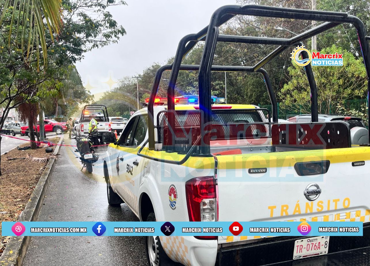 El joven estudiante iba conduciendo su motocicleta tipo Itálika 150 cc color verde sobre la avenida Nichupté, cuando perdió el control de la misma hasta derrapar y estrellarse contra una palmera.
