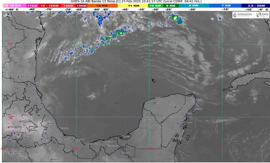 Cancún(Marcrix Noticias).- Sistema anticiclónico localizado en niveles medios de la atmósfera y sobre las porciones media, sureste del país y la Península de Yucatán, mantendrá tiempo mayormente estable con cielo despejado a parcialmente nublado durante el transcurso del día, poca probabilidad de lluvia, ambiente diurno caluroso y templado a fresco al amanecer, viento con rachas de 35 km/h principalmente sobre las zonas de costa del estado.