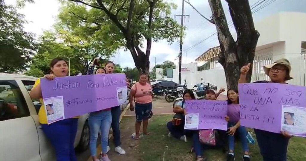 Los integrantes del colectivo Frente Nacional Mujeres (FNM), familiares, amigos y ciudadanos en general caminaron desde el Museo de la Cultura Maya hasta el Congreso del Estado, pasando antes por el Palacio de Gobierno portando pancartas y fotos de Dulce, en un grito desesperado para que su caso no quede impune.