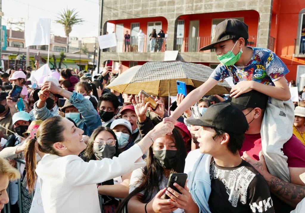 No obstante en su visita a una de las alcaldías clave de la capital que Morena perdió en las elecciones de 2021, la mandataria dedicó más de la mitad de su discurso a destacar la figura del presidente Andrés Manuel López Obrador y la Cuarta Transformación, así como programas del Gobierno federal como la Pensión Bienestar para Adultos Mayores y de su administración, como la Beca Bienestar para Niños y Niñas.