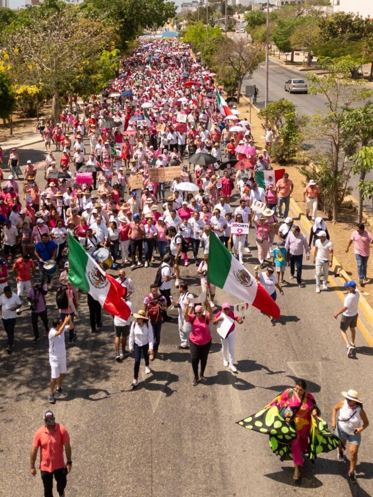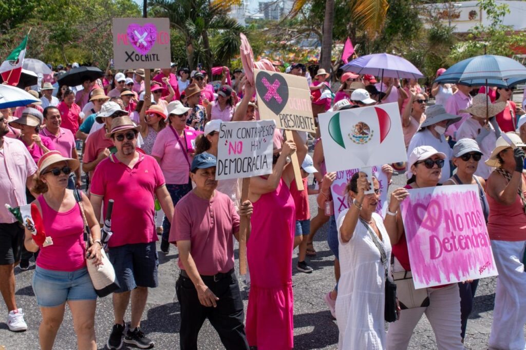 En Cancún, a partir de las 10 de la mañana, los manifestantes, ataviados en su mayoría de rosa y blanco, se reunieron en la plaza de la Reforma, desde donde caminaron hasta la glorieta del Ceviche. Allí permanecieron aproximadamente media hora, lanzando diversas consignas en favor de la democracia y de un “México libre”.