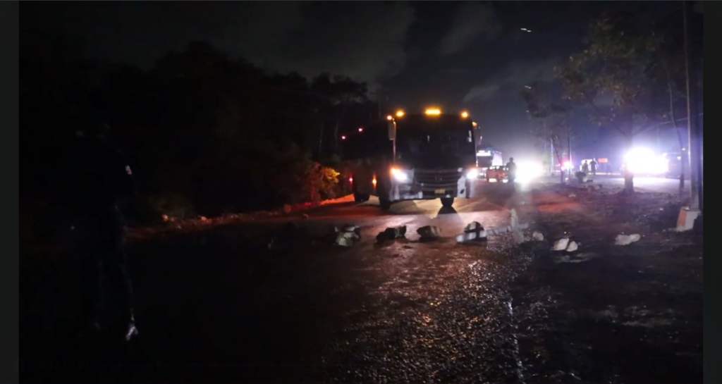 Playa del Carmen (Marcrix Noticias).— Esta madrugada continuaba el cierre de la carretera El Tintal, a la altura de Villas del Sol, cuyos vecinos protestan por la falta de energía eléctrica por más de cinco días.