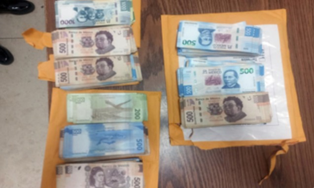 En el interior, localizaron entre sus pertenencias dos sobres color amarillo que contenían varios fajos de billetes en denominaciones de 200, 500 y 1,000 pesos, que al contabilizarse dieron la cantidad de 510 mil pesos en moneda nacional.