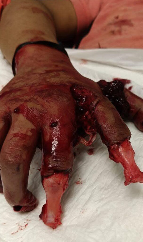 Por la gravedad de las lesiones, permanece ingresado en conocida clínica particular de Chetumal y cuya operación para no perder la mano cuesta más de 60 mil pesos.