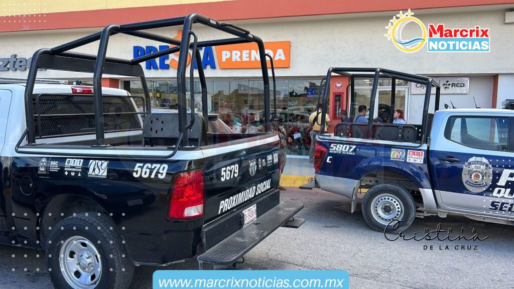 El asalto se registró esta tarde de jueves, en la Supermanzana 219, en avenida Kabah, en la Multiplaza Kabah, hasta donde llegaron elementos policiacos.