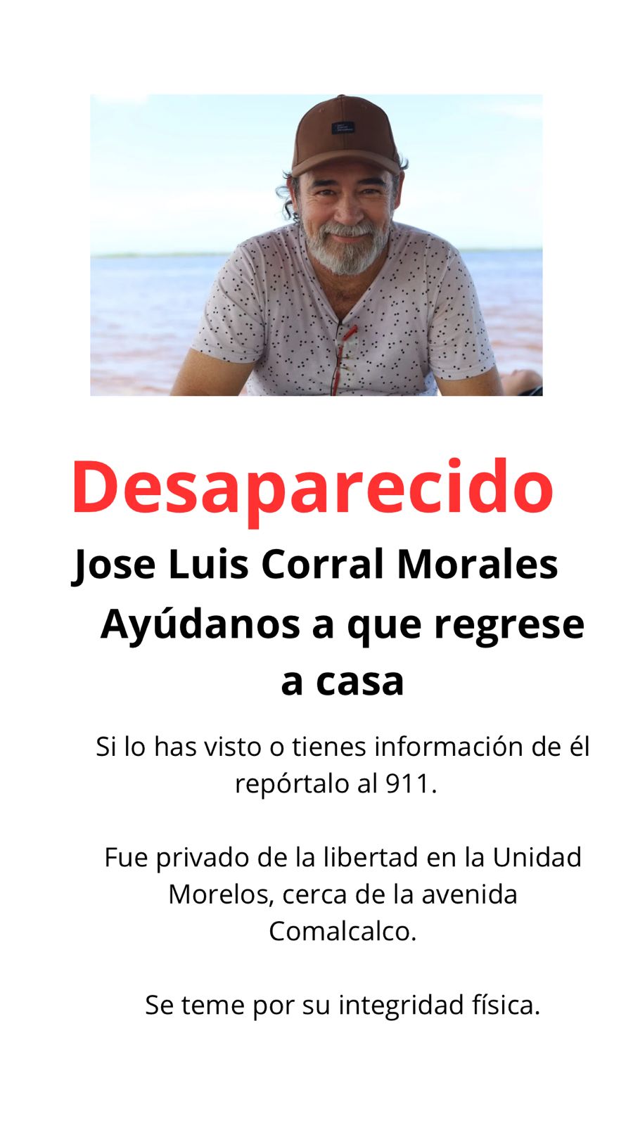 Corral es el Jefe de Diseño del Sindicato de Taxistas Andrés Quintana Roo y sus familiares temen por su vida.