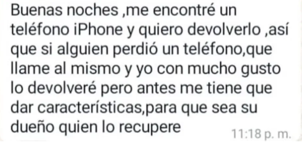 El 18 de octubre, Verónica encontró el celular en las áreas comunes y, sin saber que pertenecía a una víctima de secuestro, intentó contactarse con los números registrados en el dispositivo para devolverlo.