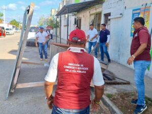Cancún (Marcrix Noticias).- Personal del Ayuntamiento de Benito Juárez implementaron un operativo para liberar banquetas invadidas por comercios informales en la Supermanzana 259 del Fraccionamiento Villas Otoch de Cancún, como respuesta a reportes ciudadanos que alertaban sobre riesgos para peatones en la zona.