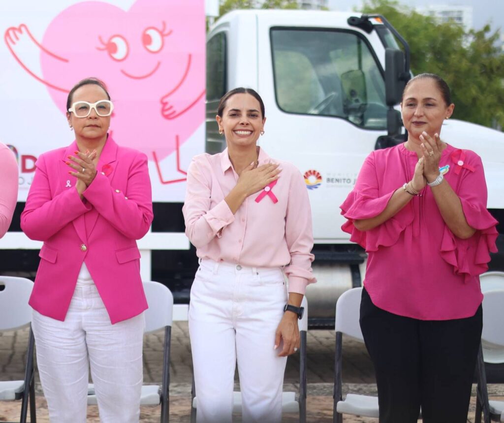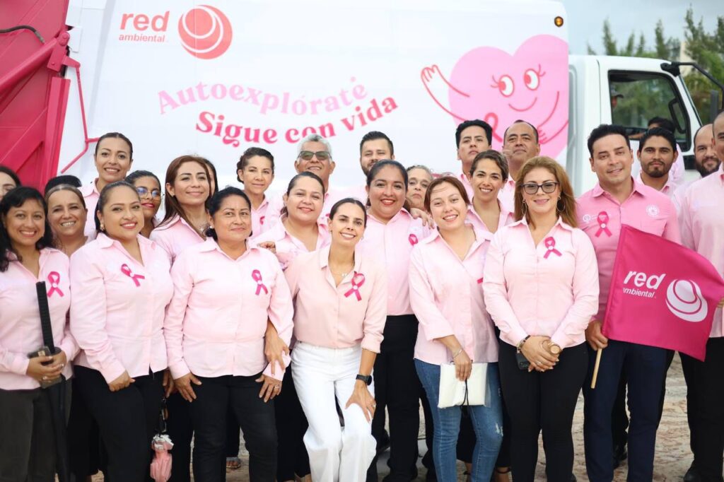 Cancún, Q. R., (MARCRIX Noticias), a 04 de octubre de 2024.- En el marco del mes rosa y del Día Internacional de la Lucha contra el Cáncer de Mama, que se conmemora cada 19 de octubre, la Presidenta Municipal, Ana Paty Peralta, dio inicio a la campaña “Autoexplórate, Sigue Con Vida”, dando el banderazo de salida a un camión rosa recolector de la empresa concesionaria Red Ambiental, que partió desde Malecón Tajamar y recorrerá las calles de Cancún fomentando la concientización, prevención y detección oportuna del cáncer de mama.