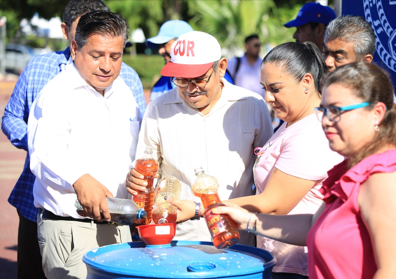 Playa del Carmen(Marcrix Noticias).- La presidenta municipal Lili Campos promueve la cultura del cuidado y conservación del medio ambiente a través del reciclaje de aceite, por lo que da inicio al programa de acopio de residuos orgánicos con el comercio ambulante.