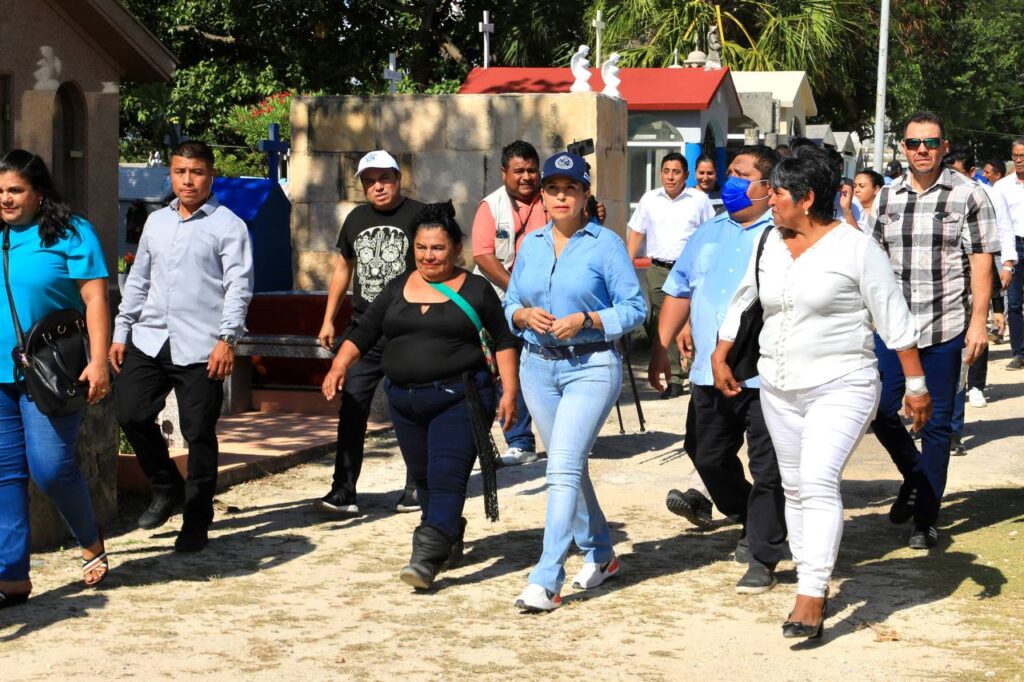 Playa del Carmen, Solidaridad, 1 de noviembre del 2022.- La presidenta municipal Lili Campos recorrió el panteón de la ciudad que fue adornado y acondicionado para que, además de preservarse tradiciones y costumbres, las familias que visitarán a sus seres queridos lo hagan en un entorno limpio y seguro. Se espera a más de 15 mil personas, este 1ro y día 2 de noviembre, en ocasión de las celebraciones de Día de Muertos.