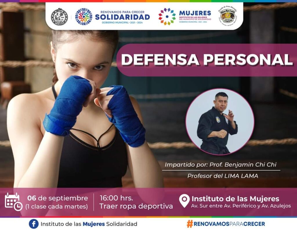Playa del Carmen, Solidaridad, 10 de septiembre del 2022.- La presidenta Lili Campos busca que cualquier persona aprenda a defenderse y enfrentar diversas situaciones de peligro, por ello invita al curso de defensa personal que tiene lugar en el Instituto de la Mujer.