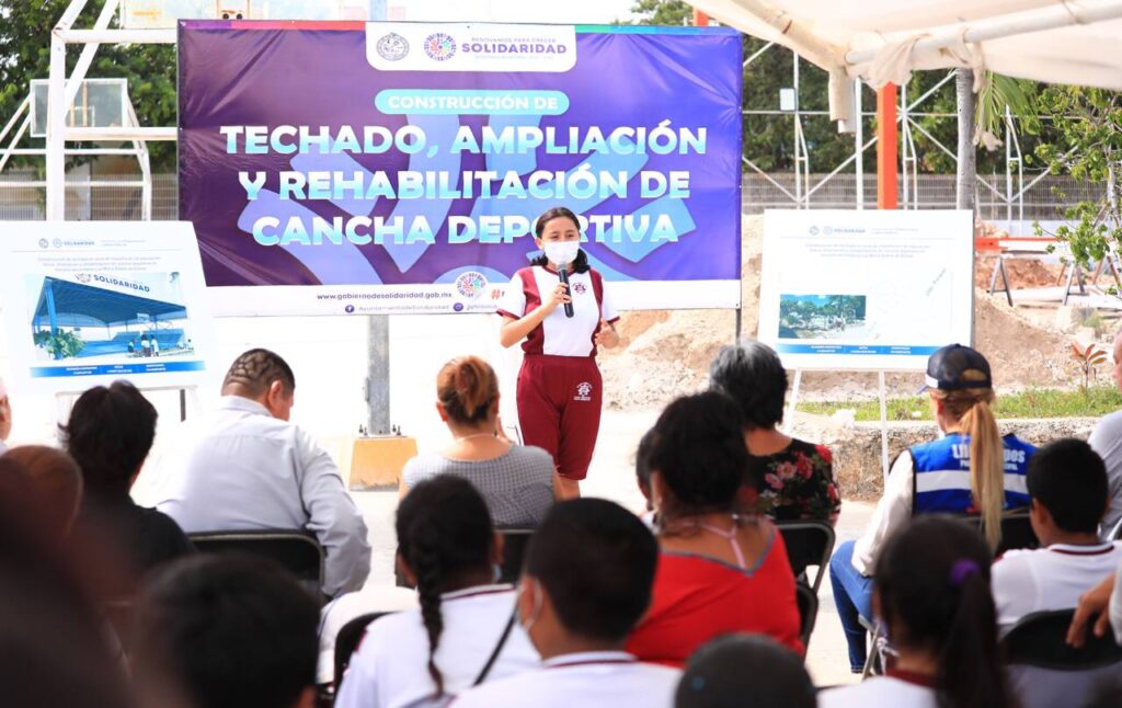 Playa del Carmen, Solidaridad, 15 de diciembre del 2022.- Más de mil estudiantes de la escuela secundaria Luz María Zaleta de Esner, del fraccionamiento de Villas del Sol, serán beneficiados con un domo cuya construcción inició la presidenta Lili Campos en respuesta a la sociedad estudiantil.