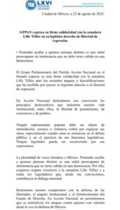 Ante la escalada de acusaciones, la bancada del PAN emitió un comunicado en respaldo a Téllez, defendiendo su derecho a la libertad de expresión y acusando a Morena de intolerancia. “Es una señal preocupante que no debe tener cabida en una democracia”, señalaron.