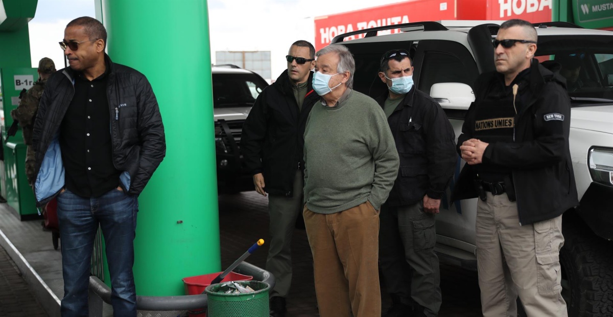 En su viaje en automóvil hasta Kyiv, el máximo dirigente de Naciones Unidas hizo una parada en el camino en una gasolinera de Wog, un municipio situado a unos 150 kilómetros de Leópolis, así como una segunda en Zhytomyr, a unos 140 kilómetros de la capital.