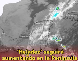 En la Península de Yucatán el Frente Frío estará generando cielo medio nublado con lluvias ligeras aisladas, viento del norte-noreste con rachas de hasta 40 km/h y temperaturas mínimas que podrían alcanzar los 17 °C en el Cono Sur.