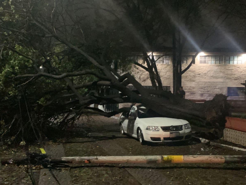 En ésta última colonia, el desplome del árbol se dio sobre un vehículo que se encontraba en la calle del Seminario.