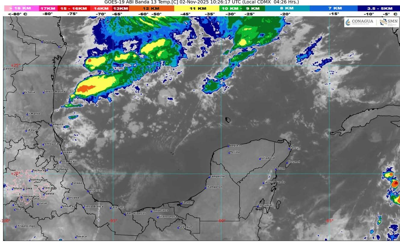 El pronóstico general para la Península de Yucatán se encuentra influenciado por el frente frío número 12, que recorrerá el litoral del Golfo de México. Su interacción con una vaguada polar y corrientes en chorro polar y subtropical provocará lluvias y chubascos, con precipitaciones puntuales fuertes en algunas zonas del noreste, oriente, centro y sureste del país, incluida la región de Quintana Roo.