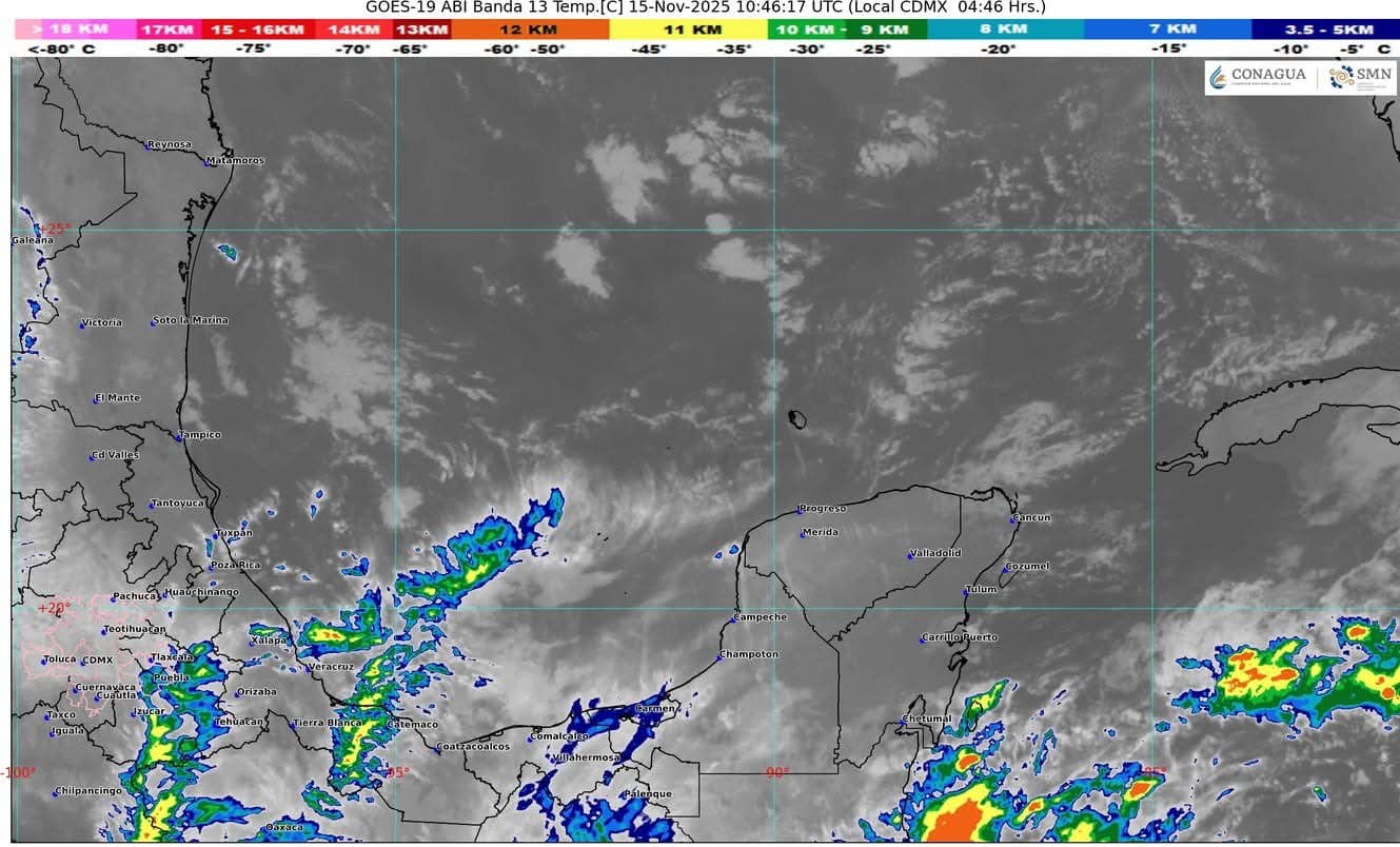 Estas condiciones se originan por canales de baja presión en el oriente y sureste del país, combinados con el ingreso de humedad del Pacífico, Golfo de México y mar Caribe, lo que también provocará lluvias fuertes en el sur de Chiapas y el propio sur de Quintana Roo.