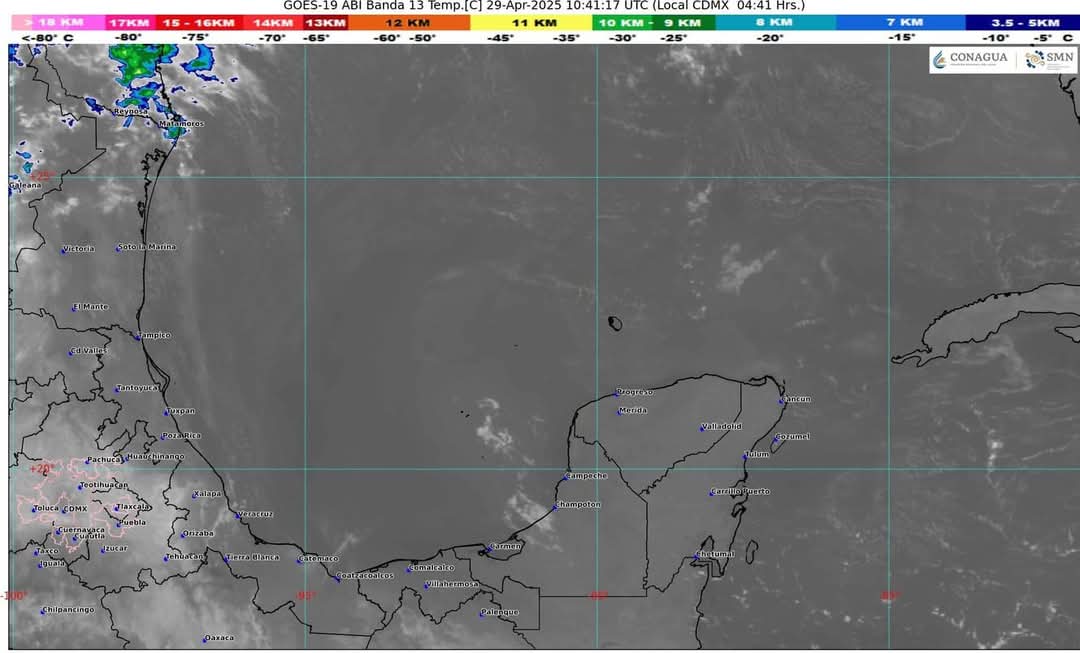 Cancún(Marcrix Noticias).- Continúa la afluencia de aire marítimo tropical con poco contenido de humedad proveniente del mar Caribe hacia la península de Yucatán, originará sobre el estado de Quintana Roo cielo parcialmente nublado con incremento de nublados durante el transcurso del día, lluvias con intervalos de chubascos, ambiente muy caluroso durante el día y cálido al amanecer, viento con rachas de 30 a 50 km/h.