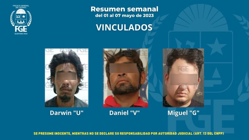 Cancún, Quintana Roo, (MARCRIX Noticias), a 11 de mayo de 2023. El titular de la Fiscalía General del Estado, Óscar Montes de Oca, informó que, en colaboración con el Grupo de Coordinación para la Construcción de Paz y Seguridad de Quintana Roo, en la semana del 1 al 7 de mayo del año en curso, se logró la detención de 94 personas y la vinculación a proceso de 24 imputados, así como también dio cuenta de cuatro cateos y de la obtención de cinco sentencias condenatorias.