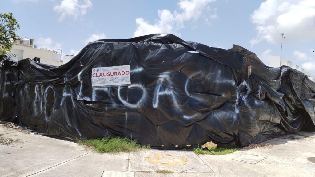 Hoy miércoles, personal de la Dirección de Protección Civil del Ayuntamiento de Benito Juárez, acudió a donde se construye la gasolinera y colocó sellos de clausura.