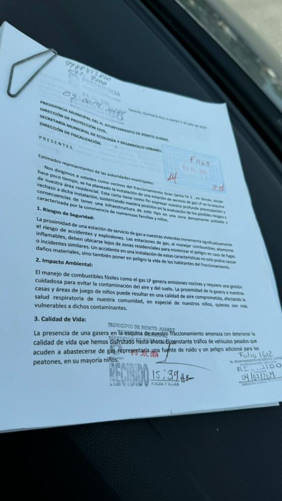 Cancún (Marcrix Noticias).- Vecinos, principalmente del fraccionamiento Gran Canarias en la Supermanzana 325 de Cancún, lograron de manera provisional para la construcción de una gasera en las cercanías de la zona.