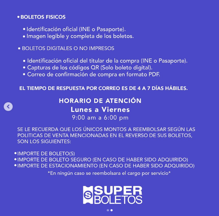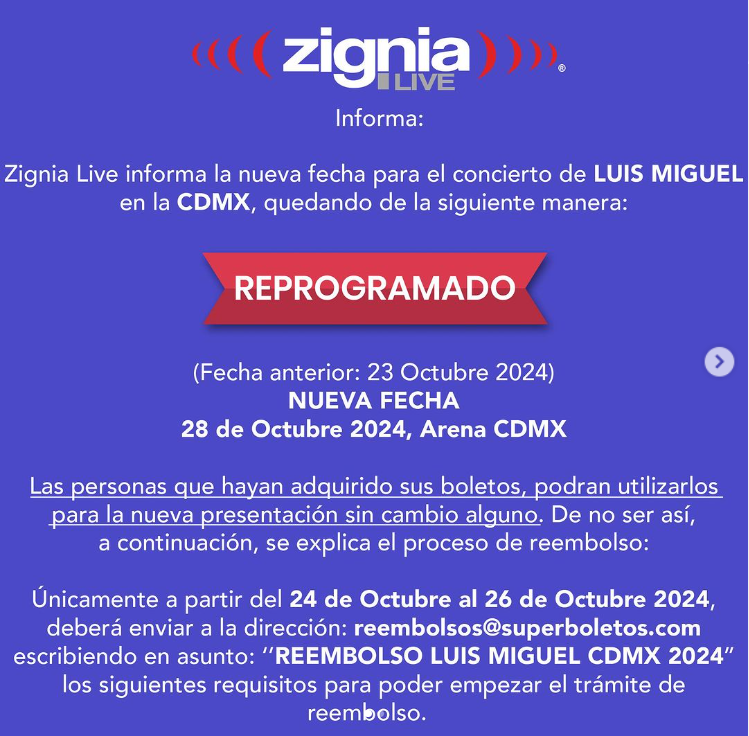 Sin embargo, los fans que deseen solicitar un reembolso pueden hacerlo entre el 24 y el 26 de octubre. El procedimiento incluye enviar un correo a reembolso@superboletos.com con el asunto “REEMBOLSO LUIS MIGUEL 2024”, y proporcionar la información necesaria según el tipo de boleto.