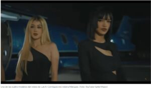 El videoclip de “Koenigsegg”, inspirado en la marca sueca de autos deportivos de lujo, muestra a Valeria Márquez al fondo de algunas escenas y al final, cuando espera a los cantantes afuera de un jet privado.