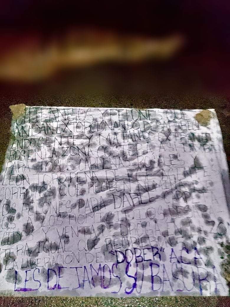 En el lugar fue encontrado un cadáver encintado (como aparece en la foto) y junto al muerto una manta con un mensaje amenazante, lo que indica que la violencia continuará en el Tulum.