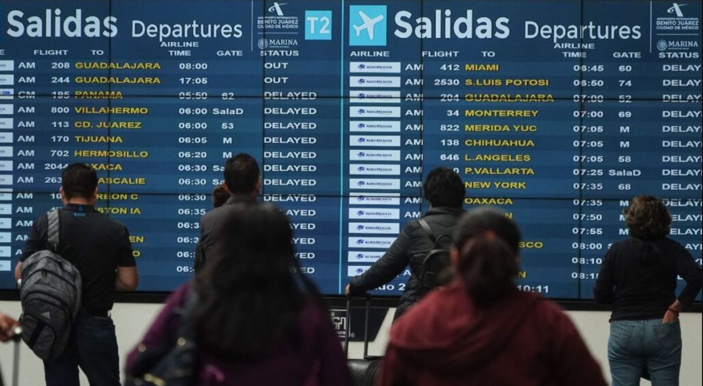 En cuanto a las salidas, también se reportaron 15 vuelos con demoras, de los cuales dos fueron de Viva Aerobús y 13 de Volaris, con destino a Tijuana, Guadalajara, Toluca, León, Monterrey, Santa Lucía, Oaxaca, Puebla, Querétaro y San José, Costa Rica.