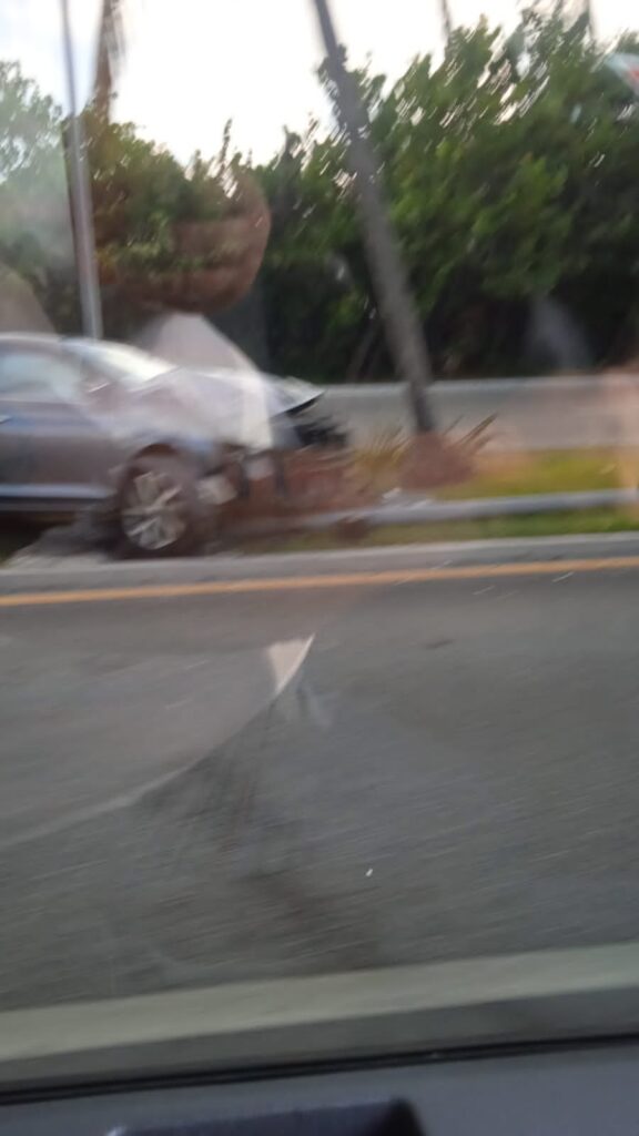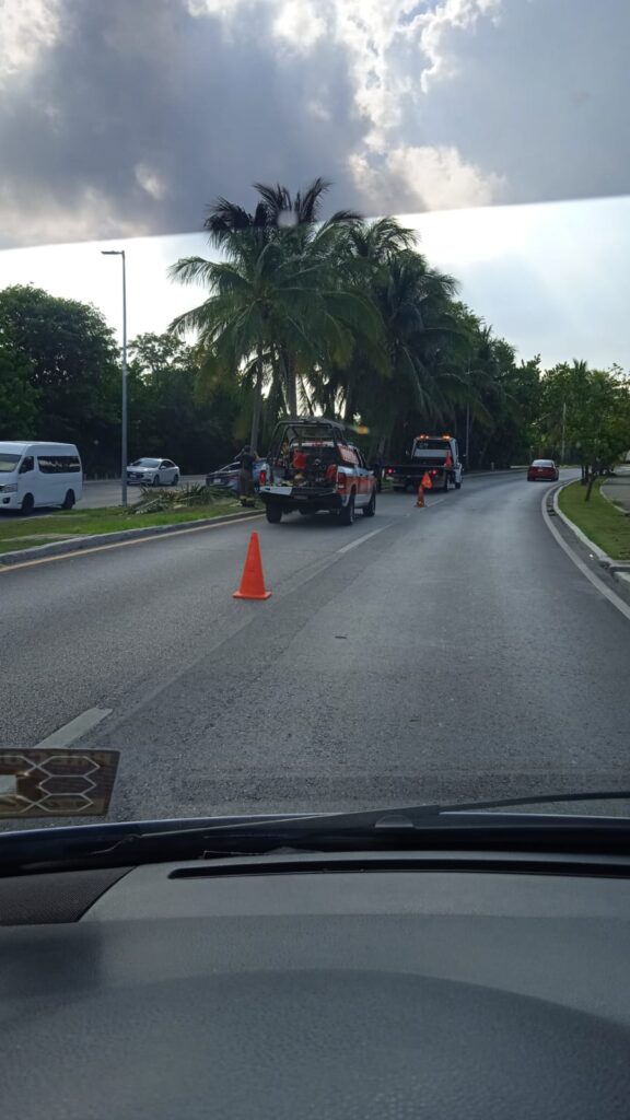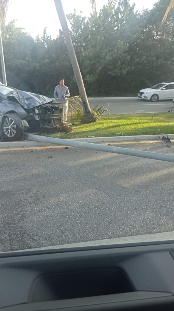 Otros usuarios reportaron un accidente en la zona hotelera de Cancún, donde el conductor de un vehículo gris perdió el control, se subió al camellón central y chocó contra una palmera.