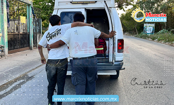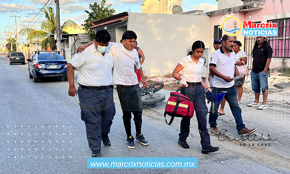 Cancún (Marcrix Noticias).- La tarde de hoy viernes, un taxista del Sindicato Andrés Quintana Roo, atropelló a un joven motociclista dejándolo severamente golpeado.