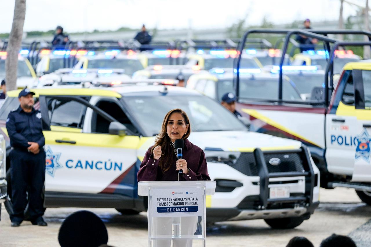 La gobernadora Mara Lezama y la presidenta municipal Ana Paty Peralta encabezaron la entrega de las unidades en el Malecón Tajamar, donde señalaron que este equipamiento busca mejorar la cobertura policial y fortalecer la prevención del delito.