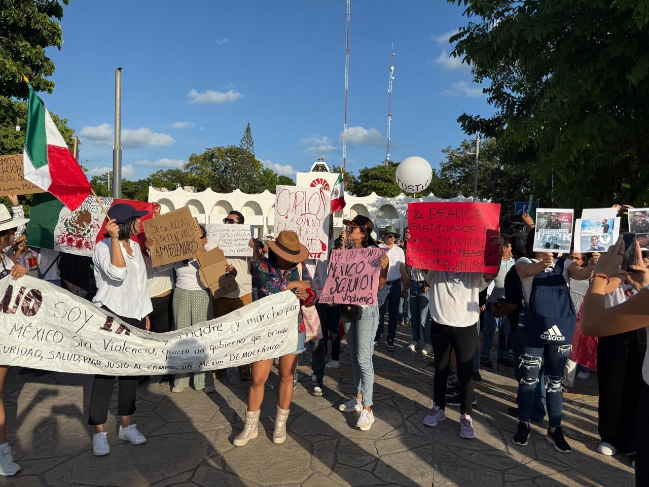 “¡Fuera Morena!”, era el grito común por parte de estos inconformes, quienes se unieron en el Palacio Municipal a otro contingente que se había congregado en la Glorieta de El Ceviche y que marchó sobre la avenida Cabá.
