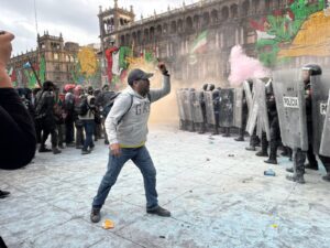 Ciudad de México. (Marcrix Noticias).– La marcha del 2 de octubre en la Ciudad de México, que recordó el 57.º aniversario de la matanza de Tlatelolco, culminó con fuertes enfrentamientos en el Zócalo capitalino. Miles de personas, entre estudiantes, maestros, sindicalistas y ciudadanos, recorrieron las calles desde la Plaza de las Tres Culturas hasta el Zócalo, transitando por Eje Central y 5 de Febrero.