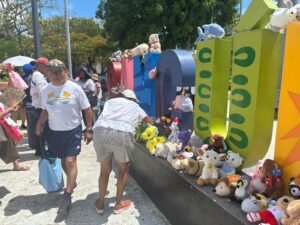 La caminata concluyó frente al Palacio Municipal, donde los asistentes realizaron un acto simbólico al colocar peluches en las letras gigantes de “Cancún”, como recordatorio de los menores que enfrentan su enfermedad sin el tratamiento necesario.