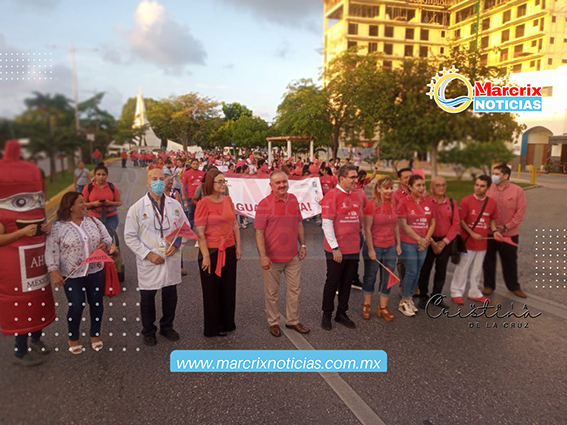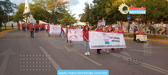 La marcha inició a las 5 de la tarde desde el área del Crucero con un contingente de más de 200 personas, en las que destacaban la directora del DIF Municipal, Doris Marisol Sendo Rodríguez, la diputada local por el partido Verde Ecologista de México, Susy Hurtado e integrantes del Sector Salud.