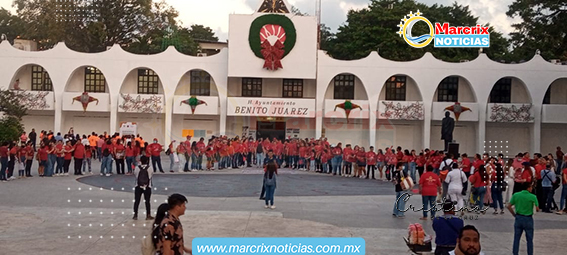 Los participantes marcharon por la avenida Tulum hacia el Palacio municipal, quienes portaron playeras rojas
