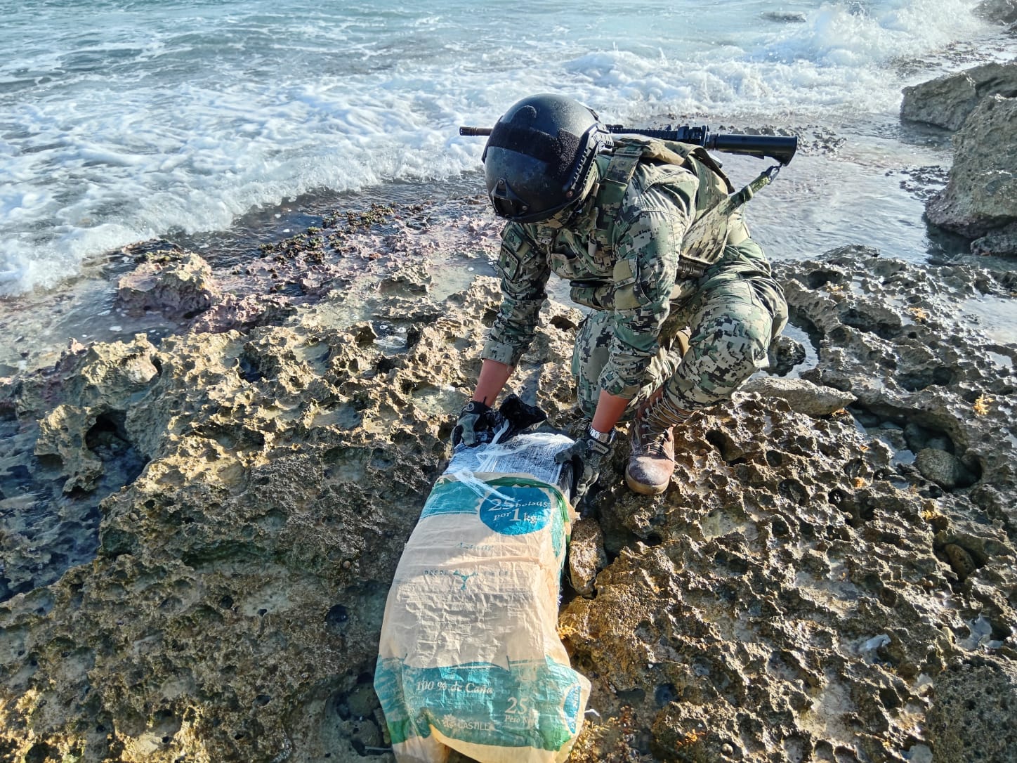 Los marinos adscritos a la Armada de México, localizaron y aseguraron en diversas acciones, 24 paquetes con polvo blanco con las características similares a la cocaína, primeramente durante recorridos de vigilancia terrestre localizaron y recuperaron un paquete envuelto con plástico negro y cinta transparente, en inmediaciones de Playa Zuri en la localidad de Xpu-Ha en Solidaridad.