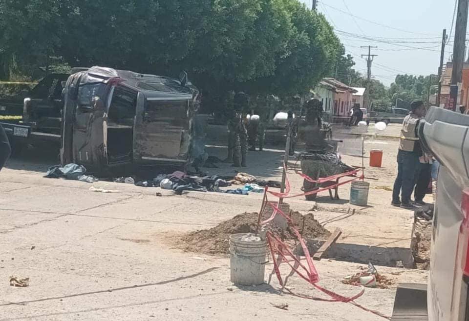 En las gráficas se observan al menos dos camionetas, una de ellas volcada y ambas con balazos que los Marinos tuvieron que disparar, debido a que los delincuentes se resistían a ser detenidos.